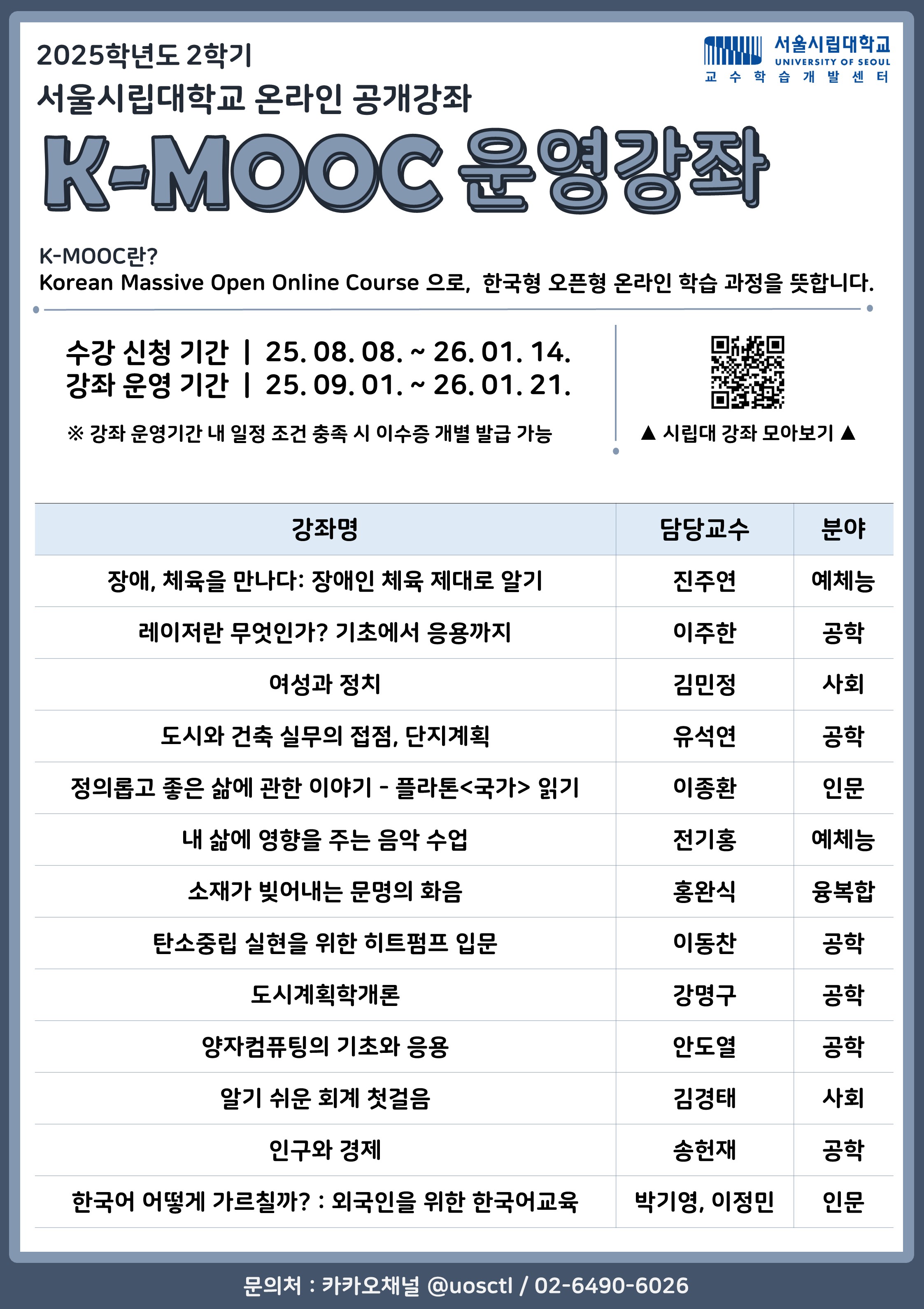 - 서울시립대학교 2025년 2학기 K-MOOC 강좌 수강 안내