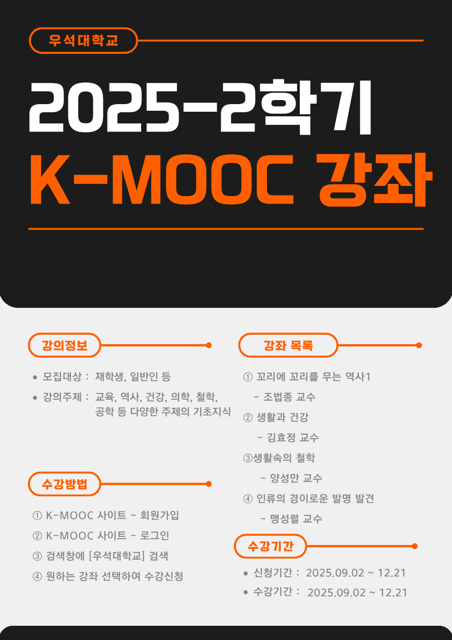 - 우석대학교 2025년 2학기 K-MOOC 강좌 수강 안내